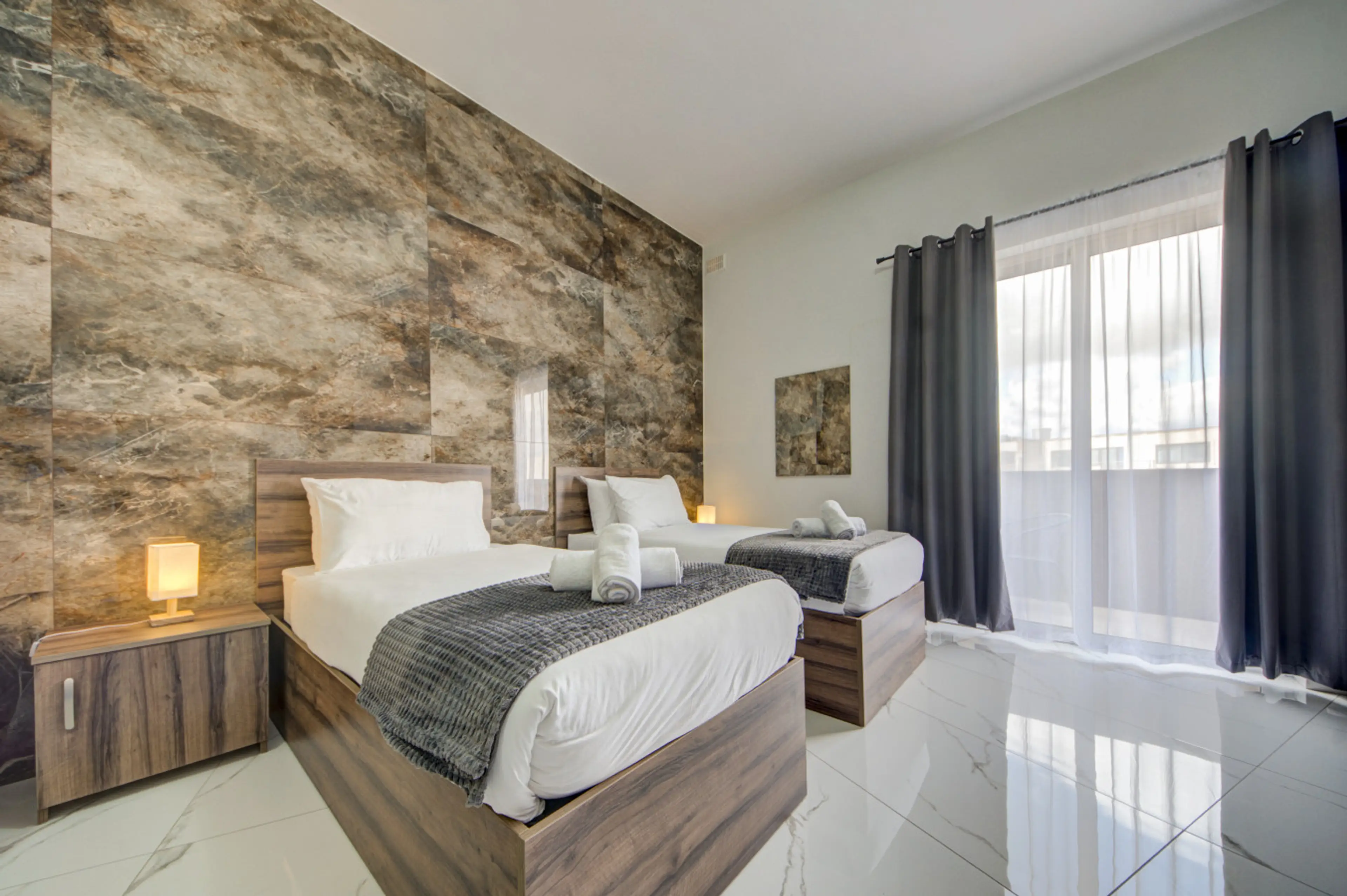 Welcome to your home in Tarxien, a stylish penthouse designed for comfort & ease. đ This 1BR apartment features an open-plan kitchen with coffee machine, kettle, toaster & fridge/freezer, a dining area for four, & a welcoming living space with 2single beds & Smart TV. đ The bedroom offers a kin...