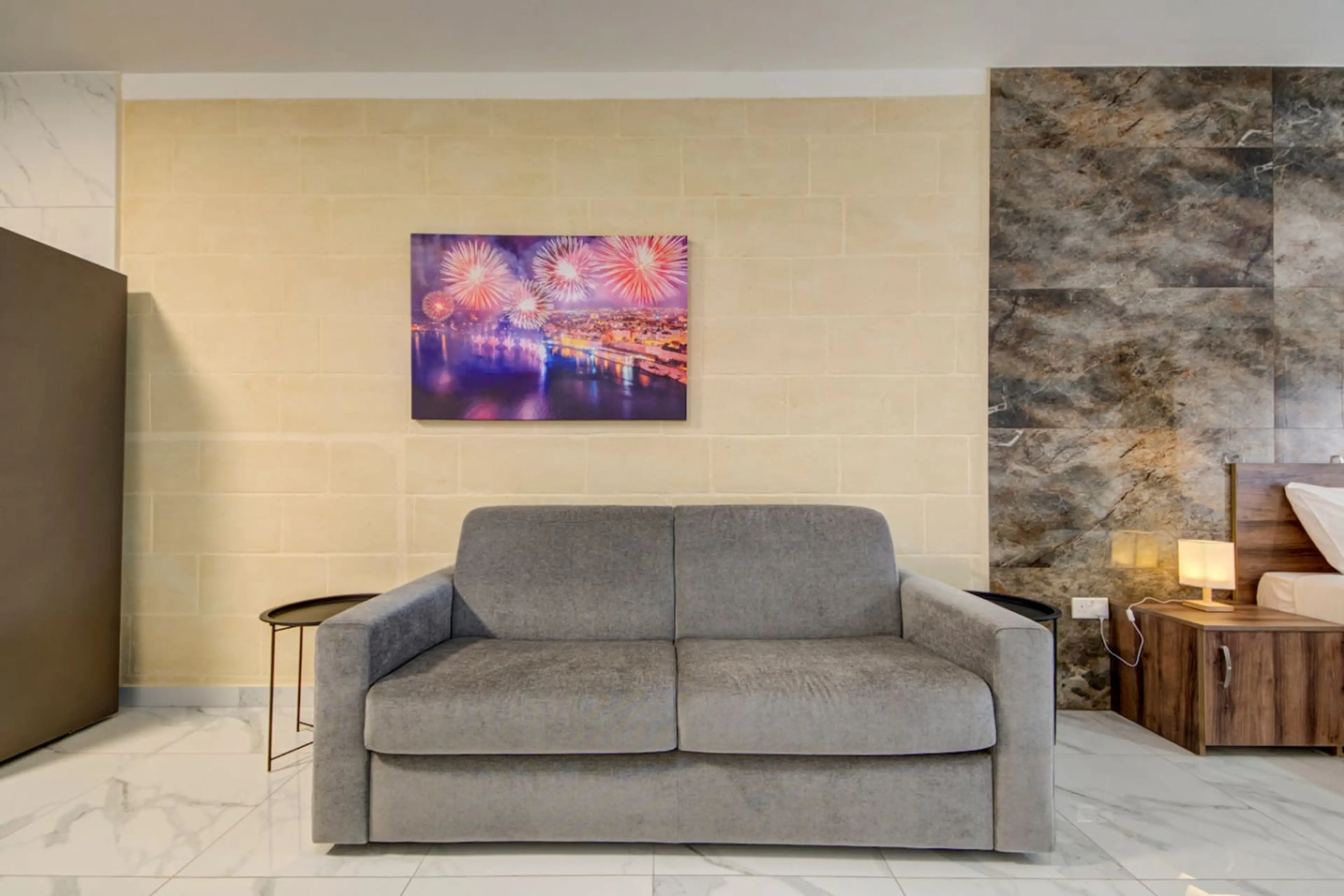 Welcome to your cozy Tarxien studio✨ This bright open-plan space features a comfortable double bed, sofa bed, fully equipped kitchen, fast WiFi, and a large balcony for relaxing moments outdoors🌊 While the studio layout means all areas share one space, the smart design keeps it practical and comf...